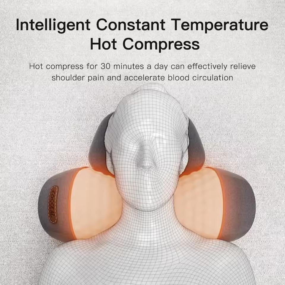 Wireless Shiatsu Large Area Heating Massage Pillow with New 3D Floating Cat Claw-Shape Massage Heads Perfectly Fit Neck