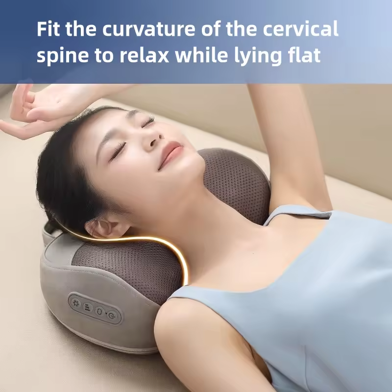 Blue Electric Portable Multi-Functional Cervical Massage Pillow Vibration Kneading Cervical Repair Traction Home Neck Massage